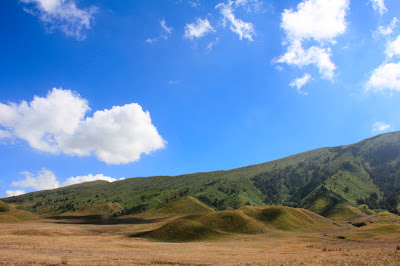 sekitar jam 09.00am kami beranjak turun untuk menunggu hardtop yang kami pesan, karena untuk menuju padang savana, bukit teletubbies pasir berbisik dan kawah bromo harus mengunakan Mobil 4WD, medannya yang berat dan berpasir sangat sulit untuk di laluin mobil biasa. dan akhirnya kami bertemu dengan hardtop yang telah kami pesan tak lama kami langsung pindah mobil dan segera menuju bukit teletubbies, di perjalanan saya sudah ngantuk yang teramat karena belum tidur dari malam saat keberangkatan ke bromo.. dalam hati sih saya pingen tidur di perjalanan menuju bukit teletubbies eh tapi tidak malah tidak bisa tidur dan takut karena teman saya Mas Pras namanya dia yang sudah tidur duluan dari sebelum pindah mobil dan melanjutkan tidurnya saat di hardtop. 2X kepalanya terpentur mobil (hahahahaha) karena jalan yg di lalui hardtop kami selain melewati turunan yang extreme berserta jalan yang berbatuan besar sedikit terganggu dengan pengunjung yang membawa motor dan memaksa motornya untuk melewati jalan itu